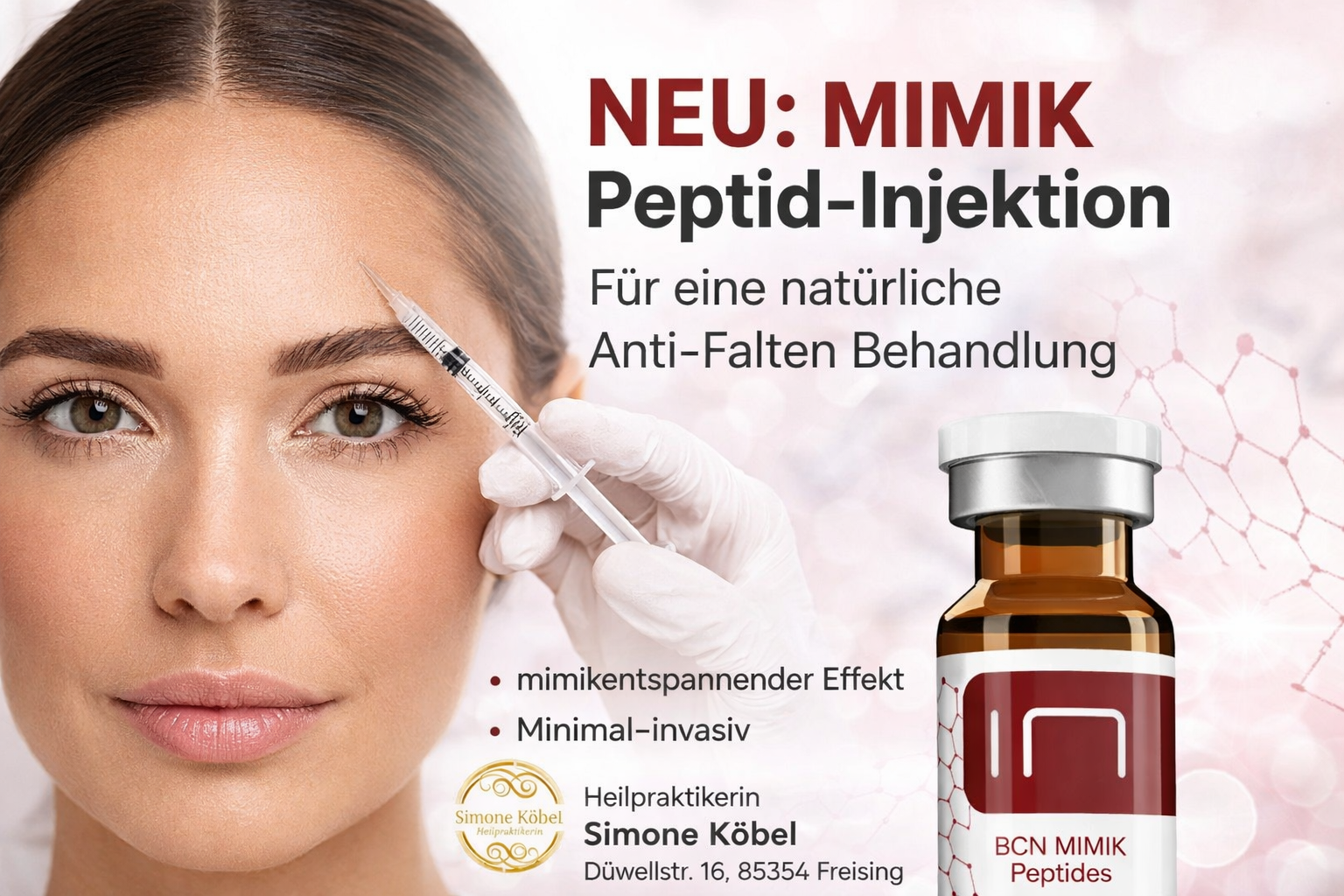 In meiner Praxis setze ich auf den Wirkstoff Argireline ®- die entspannende Wirkung auf die Mimikmuskulatur ohne komplett zu lähmen. Zur sanften Glättung von Mimikfalten.